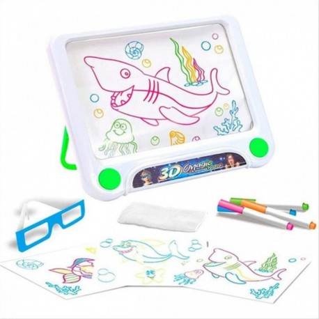 Magic Pad Tablero Dibujo Led 3d Creativo Arte Almohadilla mágica con luz resplandor: esta pizarra de dibujo led en 3d permite a tus pequeños crear impresionantes arte 3d por sí mismos que se parece al verdadero. aprende a dibujar y pintar, mejorar la coordinación ojo-mano y la percepción del color junto con mucho más mientras se aseguran de que se diviertan. Portátil y fácil de usar: tanto si vas de viaje en coche o visitas a amigos o familiares, puedes contar con nuestra almohadilla luminosa para mantener a tus hijos ocupados y entretenidos todo el tiempo. es muy fácil de usar y es una gran actividad creativa para los niños. simplemente dibuja sobre la pizarra transparente, usa las gafas y enciéndelas para ver la imagen 3d. la base ilumina tus dibujos con 5 luces led. -pantalla de dibujo 3d x 1 -gafas 3d x 1 -papel patrón x 3 -pluma fluorescente x 4 -paño de limpieza x 1 Respaldo y garantía en todos nuestro articulos ventas por mayor y al detal.