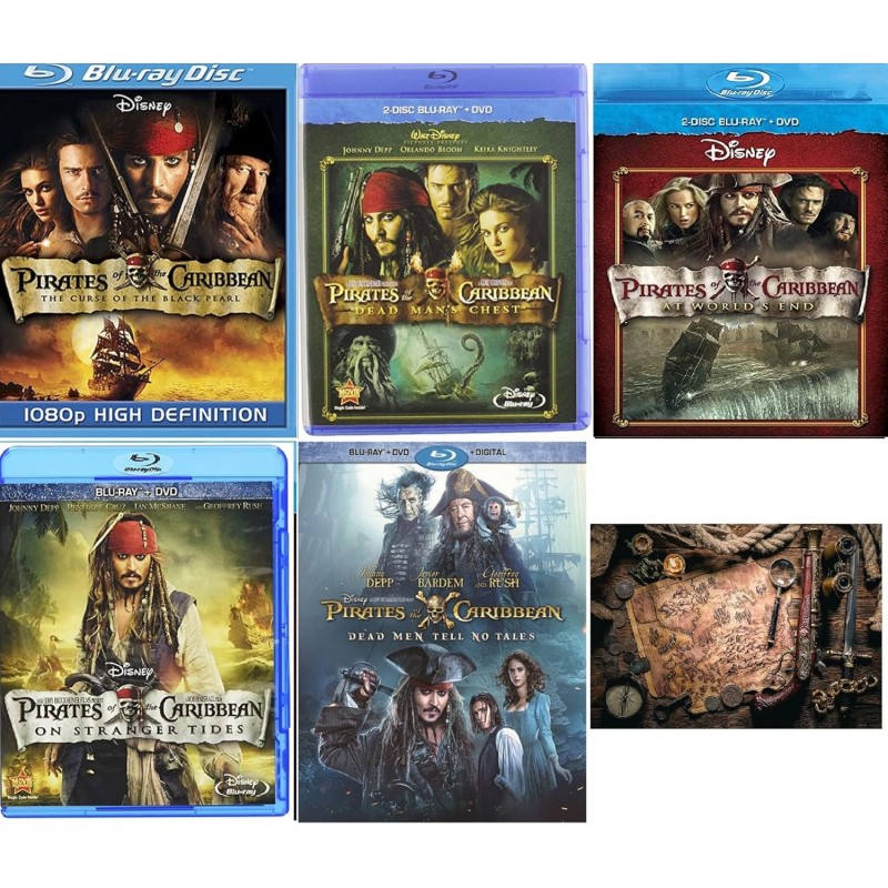 Pirates of The Caribbean 5 Blu Ray Collection One 1 Two 2 Three 3 Four 4 Five 5 Johnny Depp Includes Treasure Map Glossy Print Art Card