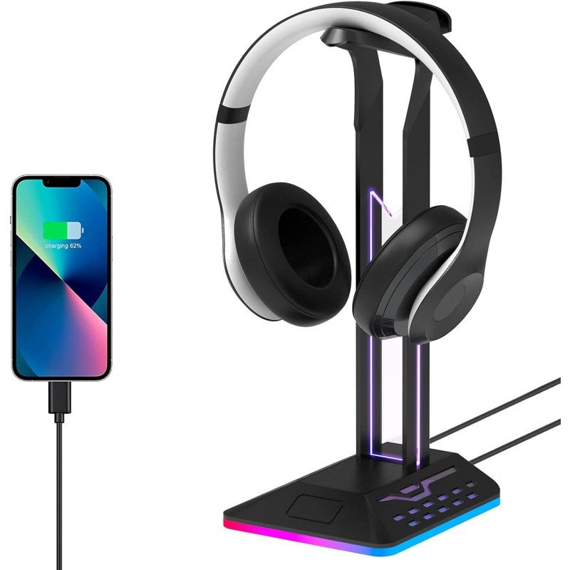 ABS RGB Headphones Stand for Over-Ear Headphones, Gaming Headset Holder, Desk Display Hanger with Solid Heavy Base Compatible with Sennheiser, Bose, Beats, Razer, AKG, Sony PS4 (Black)