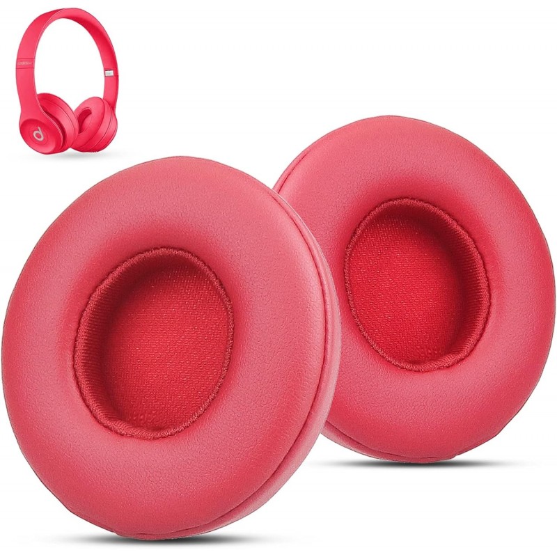 Solo 3 Earpad Replacement for Beats Headphones, Compatible with Beats Solo 2 Wireless/Wired, Do not Fit Studio 3/2, Beats Replacement Ear Pads with Memory Foam, Protein Leather (Rose Red)