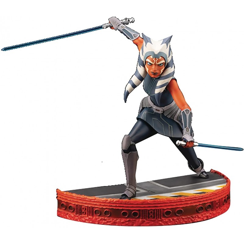 From the final season of Star Wars: The Clone Wars, Ahsoka Tano is joining the ARTFX lineup! The dynamic posing of this piece captures Ahsoka's gallant figure, and the design of the semicircle base brings the series to life with its dissolved edges. ARTFX features easy, snap-fit construction with durable PVC and ABS parts. Don't miss your chance to add this piece to your collection today!