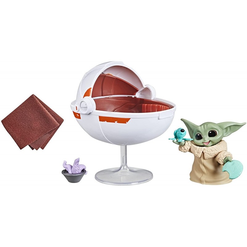 The adorable 50-year-old creature known as The Child (Grogu), and affectionately referred to by fans as “Baby Yoda,” is many things: cute, curious, hungry, sleepy, Force-sensitive, and one of the galaxy’s most wanted! From Hasbro’s Star Wars Collection: The Bounty Collection The Child (Grogu) collectible toys, inspired by the super-cute character from the hit Disney+ series The Mandalorian! Fans can start their own collection of this adorable character in poses inspired by iconic scenes from the live-action streaming series (each sold separately. subject to availability)! This posed cutie features The Child (Grogu) in a fun pose inspired by scenes from the live-action series on Disney+ and comes with 5 entertainment-inspired accessories, including hover-pram with float stand and removable pram cover, cookie, Sorgan frog, tentacle soup bowl, and fabric blanket! Star Wars products are produced by Hasbro under license from Lucasfilm Ltd. Hasbro and all related terms are trademarks of Hasbro.