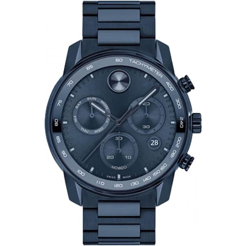 Men's Bold Verso Blue Ion-Plated Stainless Steel Case and Bracelet with Tachymeter Scale Swiss Quartz Watch,Blue (Model:3600868)