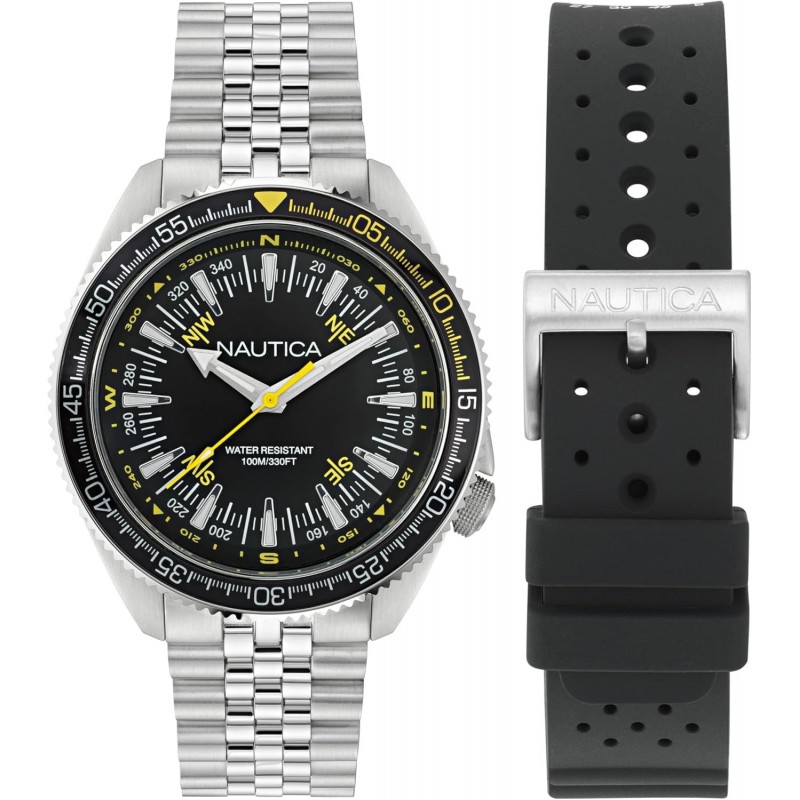 Men's NAPNVF303 Vintage Receycled Stainless Steel Bracelet & Black Silicone Strap Watch