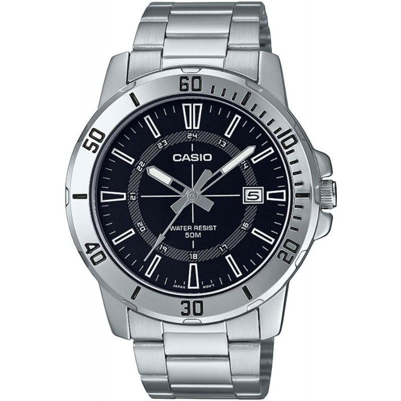 MTP-VD01D-1CV Men's Enticer Stainless Steel 24 Hour Black Index Dial Casual Analog Sporty Watch