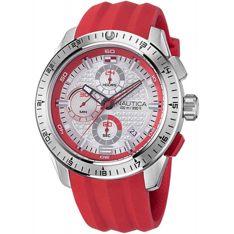 Nautica Men's Stainless Steel Quartz Silicone Strap, Red, 24 Casual Watch (Model: NAPNSF111)
