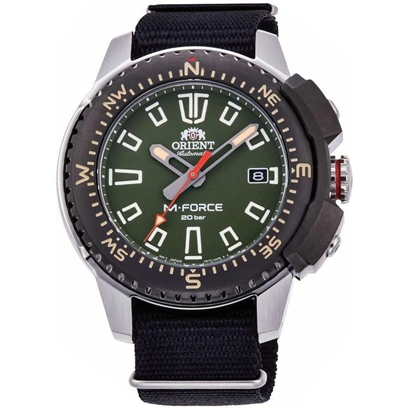 Orient RA-AC0N03E Men's M-Force Delta Nylon SLP-Thru Band Green Dial Automatic Dive Watch