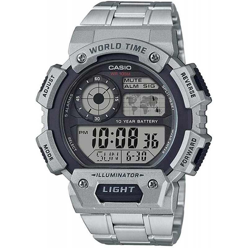 Casio AE-1400WHD-1A Digital World Time Stainless Steel Mens Sport Watch AE-1400