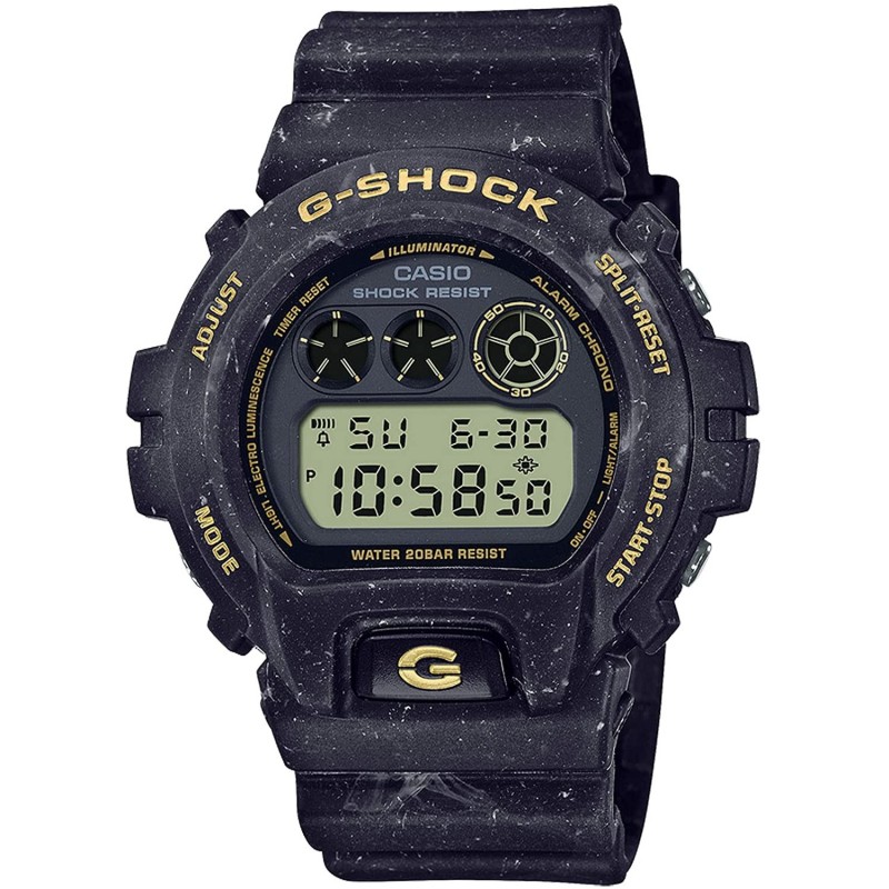 This watch from the Smokey Sea Face Series represents the late night, jet-black ocean. It has a seamless all-over design representing ocean waves and created by mixed color resin-molding technology. It's a great addition to the classic digital DW6900 series and ready to hit the streets and get heads turning. It's got all the essential G-Shock features and functions such as electroluminescent (EL) backlight, stopwatch, world time, timer and alarms.