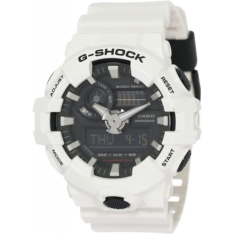Features: Case / Bezel Material: Resin Resin Strap Quartz Movement Mineral Crystal Analog Digital Display Shock Resistant LED Light Super Illuminator World Time 31 Time Zones (48 Cities + UTC) 1/100-Second Stopwatch Stopwatch With Target Time Alarm Countdown Timer 5 Daily Alarms (With 1 Snooze Alarm) Hourly Time Signal Full Auto-Calendar (To Year 2099) 12/24-Hour Format Button Operation Tone On/Off Regular Timekeeping Hand Shift Feature Accuracy: ±15 Seconds Per Month Day Display Solid Case Back Buckle Clasp 200M Water Resistance Approximate Case Diameter: 57.5mm Approximate Case Thickness: 18.4mm