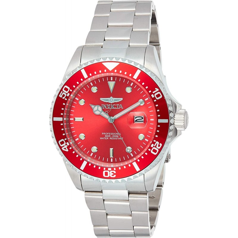 Invicta Men's Pro Diver 43mm Stainless Steel Quartz Watch, Silver/Red (Model: 22048)