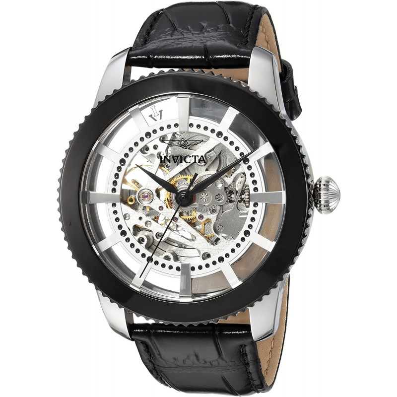 Invicta Men's Vintage Stainless Steel Automatic-self-Wind Watch with Leather Calfskin Strap, Black, 22 (Model: 23637)