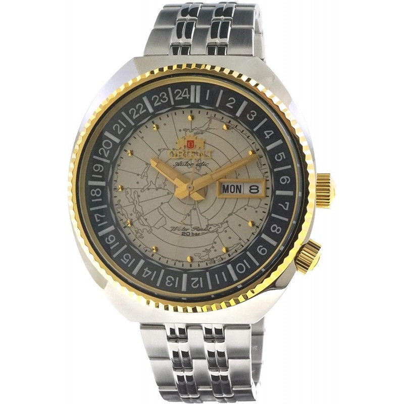 White dial enhanced by luminous yellow gold-tone hands. Silver-tone stainless steel case with a 2 stainless steel band. Automatic movement. 200 meters / 660 feet water resistance. Fixed bezel. Scratch Resistant Mineral crystal. Solid caseback. Fold Over clasp. Pull / Push crown. Case size 43.5 mm x 13.9 mm. Band 20 mm x long. Orient RA-AA0E01S19B Revival Watch.