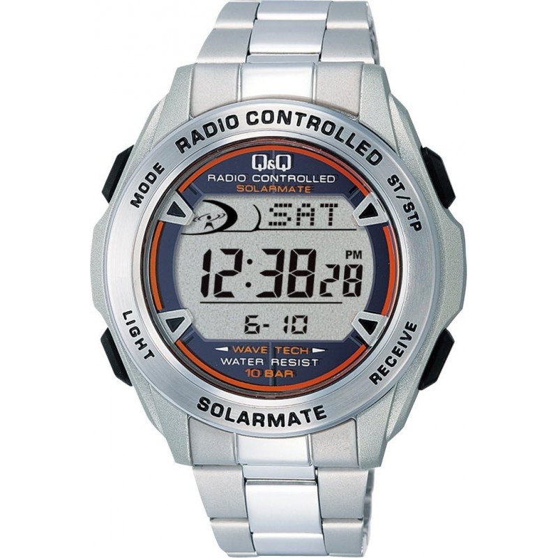 SOLARMATE watch CITIZEN Q & Q Chronograph Solar Digital Radio (Solar Mate) Silver MHS7-200 Men's 10 water pressure