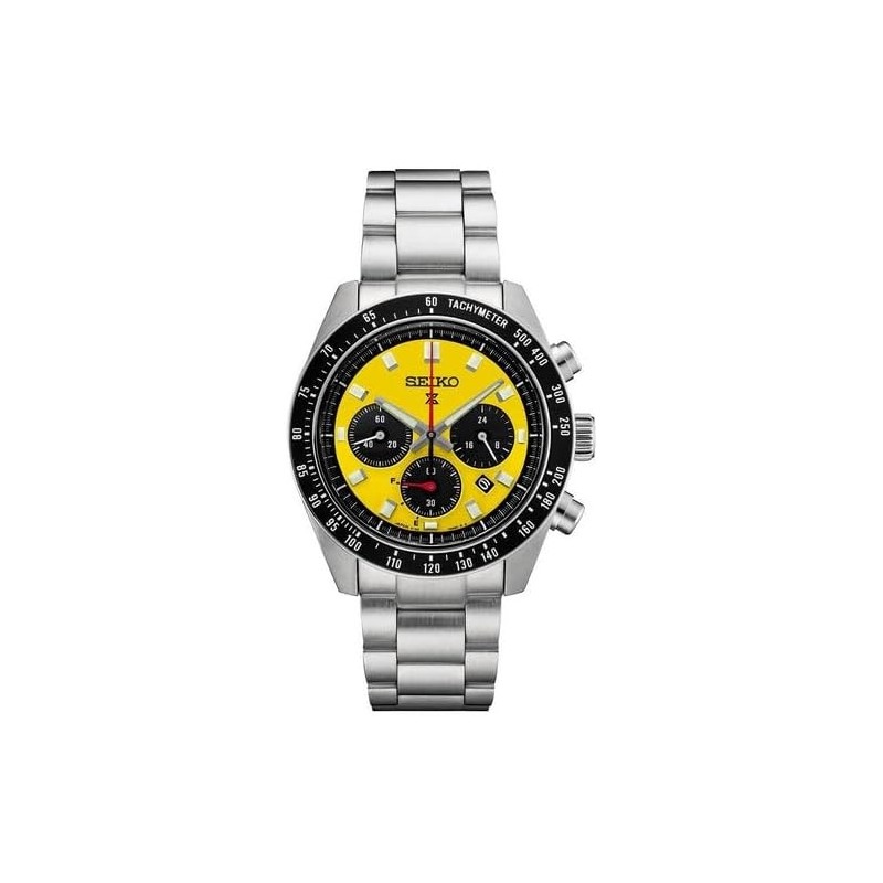 SSC929 Men's Analog Chronograph Quartz Watch - Yellow Dial Silver-Tone Stainless Steel Band - 100 Meters Water Resistant Depth Quartz Watch